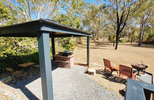 Tiny Ubuntu is set in a lovely garden and dam, complete with a BBQ gazebo for cooking meals, a tailor-made art workshop, a campfire night to relax under the stars, and access to the herb garden. Experience the allure of Baffle Creek close to the charming towns of Deepwater, Agnes Water, Seventeen Seventy, and an hour from the coastal town of Moore Park Beach.