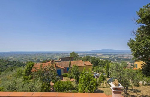 Porciano 8 km from Vinci: Manor house "La Baghera", 350 m a.s.l.. 10 km from the centre of Vinci, 58 km from the centre of Firenze, 68 km from the centre of Pisa, in a quiet, sunny position on top of a hill, in the countryside. For shared use: garden 250 m2 (not fenced), swimming pool (13 x 5 m, depth 90 - 100 cm, seasonal availability: 01.May. - 30.Sep.). Outdoor shower, garden furniture, barbecue. In the house: washing machine (for shared use), heating to be paid on the spot (01.Nov. - 15.Apr.), heating available only from 01.Nov. - 15.Apr.. 1 km long narrow motor access to the house. Parking on the premises. Grocery 1 km, supermarket 3 km, bus stop 1.5 km, sandy beach "Viareggio" 72 km, thermal baths "Montecatini Terme" 30 m. Golf course (18 hole) 17 km, tennis 4 km. Nearby attractions: Pistoia 20 km, Carmignano 25 km, San Miniato 27 km, Montecatini Terme 30 km, Montecarlo 32 km, Lucca 48 km. Please note: the photograph shows a typical example. Additional accommodations can be booked.