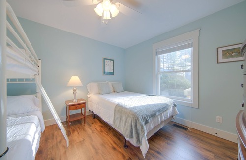 Bedroom Suite: Queen Bed | Bedroom 2: Queen Bed | Bedroom 3: Full Bed, Twin Bunk Bed | Lower Level: Full Futon