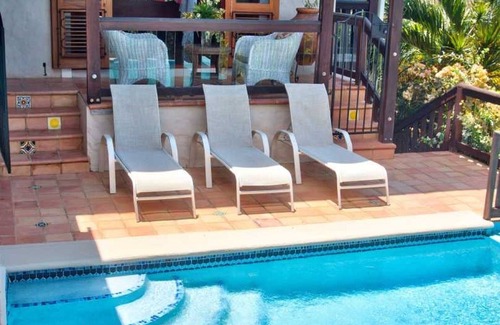Nestled in a tropical hillside, this villa offers outstanding views from the pool, house and all bedrooms.