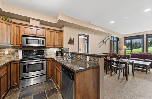 Welcome to Tod Mountain Serenity at Stone's Throw #36. This exceptional two-bedroom, two-bathroom condo offers a perfect alpine getaway. You can ski straight to your back door from one of Stone's Throw's best ski-in locations and unwind in the private hot tub with breathtaking mountain views. Plus, stay cool in the summer with portable air conditioning.