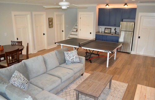 The kids will love to hang downstairs in the rec room with wet bar, 2nd fridge, ping pong table, TV, sectional and pub table for game night.