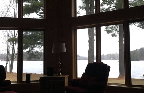 Family Friendly 4 season, 2 bedroom plus private sunroom with sofa sleeper, sleeps 6 comfortably. The lakefront home sits on a level sandy lot on a high water quality lake. The lot is framed by majestic 100 year old white pines. Home sits on 26 acres on dead end road for the ultimate in a peaceful getaway. Canoe, paddleboat and kayaks are available with the rental. A dock and swim raft are also available on this full recreation lake.