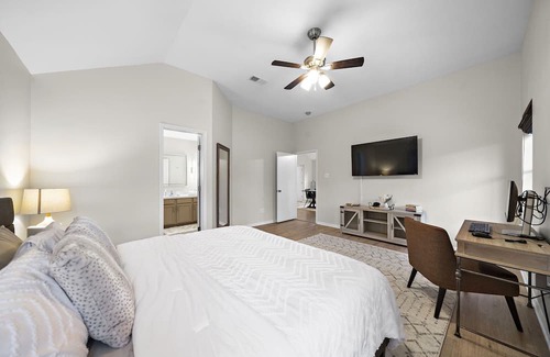 Discover the perfect blend of convenience and comfort in our 3-bedroom, 2-bath Tomball retreat. With two dedicated work desks and 1200 Gbps internet speed, it's an ideal space for remote work, accommodating a family of four with ease. Entertain in style with our full outdoor kitchen and bar, perfect for gatherings. Our smart home features keyless entry, a smart garage, 3 smart TVs, and a Nest thermostat, ensuring a tech-savvy stay. Enjoy the safety of our neighborhood, complete with parks and a community pool. For added peace of mind, we're just a few miles from several hospitals, providing easy access to medical facilities for our medical professionals. Additionally, being part of A-rated Tomball ISD, one of Texas's top school districts, adds an extra layer of reassurance to your stay. Book now and experience the convenience, safety, and comfort of our Tomball retreat – where modern amenities and accessibility to hospitals meet to create a truly exceptional stay.