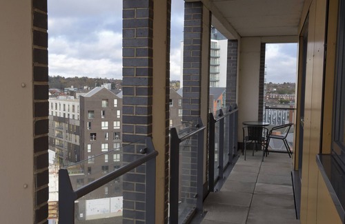 This modern apartment is well furnished and the living/dining area has two access doors to the wraparound balcony which provides spectacular views across the waterfront areas and the town; perfect for both business and leisure stays. There is a separate, fully equipped kitchen including fridge/freezer, oven and hob, microwave, toaster, washer/dryer, iron/ironing board, and sufficient cooking/serving equipment for your day-to-day catering.