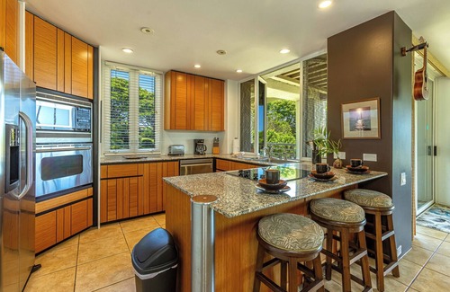 #2104 offers a fully equipped kitchen, a full-sized washer and dryer, free high-speed wireless internet, and free phone calls to the mainland (U.S. & Canada). You can enjoy ocean views from the large covered lanai, surrounded by a tropical garden setting. Additional amenities include beach chairs and beach towels for your use during your stay, as well as free assigned parking.