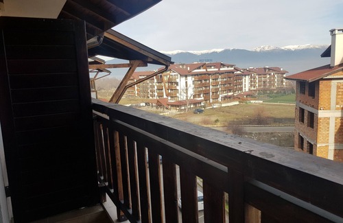 The Apartment consist of a entrance hall, leading to a very spacious living area full of natural light, consisting of a sofa (sofa bed) 2 armchairs, 43"Philips smart t.v. a 12'000btu A.C.with a small cosy kitchen with fridge, dolce gusto coffe maker sets of plates and cups, cutlery front balcony overlooking the Pirin Mountain and Vihren ski slopes, a bedroom with a double bed and a balcony overlooking Belvedere complex and Guiness complex. A bathroom with shower and a box room. All guests of the apartment are entitled to free use off SPA facilities, Indoor Pool, Outdoor Pool (summer period only) and Gym. A free parking Space (subject to availability)