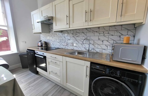 Step inside this stylish first-floor apartment on trendy MacCurtain Street, right in the heart of Cork City. The bright, open-plan living and kitchen area is filled with natural light, featuring a large sofa, flat-screen TV, Wi-Fi, and all modern conveniences, making it perfect for relaxing or socialising.