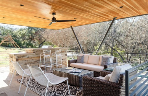 Timeless design and craftsmanship define this modern Westlake experience. Designed by renowned architect, Michael Hsu, includes pool, spa, sport court, in-ground trampoline, fire pit, full outdoor living and kitchen set up. This home has 5 bedrooms, 4 baths and can accommodate 15+ people. The home is located in the highly sought after area of Westlake Hills, 10 minutes from down town. The property sits on a 1 acre lot which is private, secluded and tranquil. Amazing open floor plan for entertaining, co-working, relaxing and just having fun with your group! You are going to love the indoor/outdoor experience this home will provide.