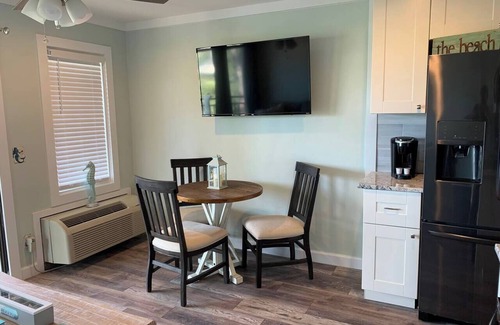 Fully renovated oceanview villa with all-new finishes and furnishings! Enjoy a comfortable King bed, Queen sleeper sofa, spacious tiled shower, and a fully equipped kitchen with full-size black stainless appliances and stone countertops. Smart TVs in both the living room and bedroom. Beach chairs and two bikes included! Located in Seaside Villas, a gated oceanfront complex just steps to the sand and a short walk to Coligny Plaza, the Tiki Hut, dining, shops, and more.