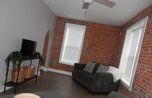 The apartment contains 2 bedrooms and 1 bath. There is a fully appointed eat-in kitchen as well as a large living room for relaxing after a full day of activities. Internet is provided as well. Great central location for all of your local activities whether it's hiking the trails of Hoosier National Forest, the recreation of Patoka Lake, a bass tournament at Rocky Point, walking along the banks of the river at Sunset Park, eating at the Patio or enjoying a day at Holiday World theme park. Make it a lady's getaway and go to Bottom of the Barrel wine room below the apartment to stay for a while or grab wine, beer and food to relax on the large wooden deck or, during the week, schedule advance massages or chiropractic appointments at Complete Wellness next door. There are several restaurants (Pour Haus and Post) and retail establishments within walking distance as well as a bakery and a Train Depot. No matter the reason for your visit to our area, these accommodations will be just what you need!