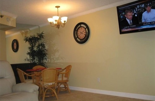 This 4th floor unit features two King Size Beds with pillow top mattresses and a Deluxe Queen Size Sofa sleeper (trampoline type construction with 4' mattress), three large flat screen TVs and ceiling fans for your optimum comfort.