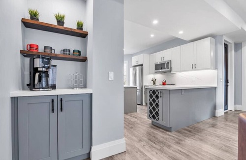 As our valued guests, you have full access to this charming first-floor unit in our triplex. The entire space is yours to enjoy, including two comfortable bedrooms, two full bathrooms, a well-equipped kitchen, and a cozy living room with an electric fireplace.