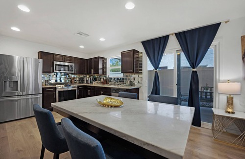 Your home away from home in Las Vegas with 3 bedrooms. This superb house boasts 2 queen beds and 1 king bed, perfect for a group getaway. Enjoy the serene atmosphere and modern amenities like heating, AC, and more. With 3 bathrooms equipped with hair dryers, bathtub, and shower, your stay will be nothing short of pleasant. Experience the magic of Las Vegas at our house.