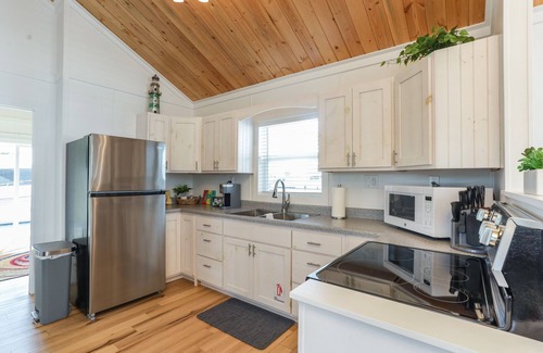 Please note that this Houseboat is located on the water in a marina, and you will be walking on docks that may include uneven footing. There are no railings on the front or back decks or along the docks. May not be suitable for young children, people with stability issues, or accessibility issues (i.e. wheelchair - no ramp, standard door widths throughout).