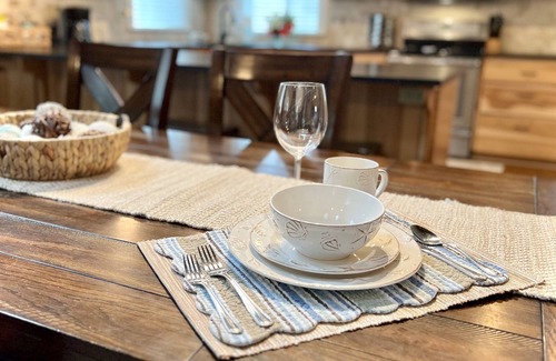 The kitchen, living and dining areas are open, roomy, and elegantly furnished—great for spending time together after being apart for too long. Cathedral ceilings open to the upstairs landing outside the bedrooms, giving the whole house an expansive feel.