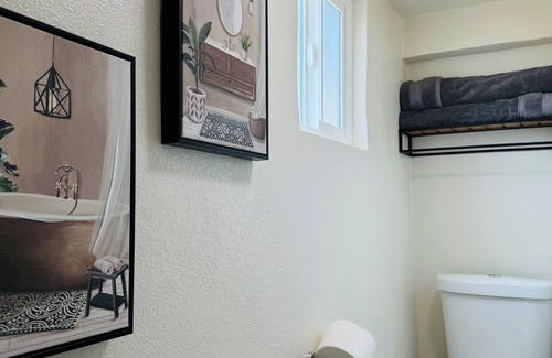 This open concept one bedroom unit will surely become your favorite place to stay in Mojave. It’s a perfect unit for two! Enjoy a full size kitchen and appliances. Fully stocked with all the pots/pans and utensils needed to cook a delicious meal. The full size dining room table is inviting and refreshing. We invite you to come rest your head on our hotel style bedding and fluffy pillows.