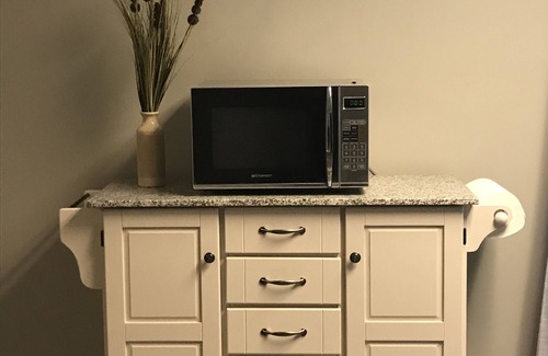 You have your own parking spot on the driveway with path and motion lights to your private entrance. The lower level with a screened porch is your own personal space. It’s accessible from a private outside entrance directly into your suite, available from the back of our home. We have a spacious backyard that you are welcome to use for your leisure.