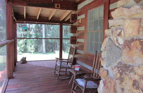 The Florida National Scenic Hiking Trail is 3.5 miles east, over a dirt road that can be hiked or driven. Over 60 miles of the trail roll through the Ocala National Forest. The Great Florida Birding and Wildlife Trail is near by, and fauna viewed on/near the property include: wild turkeys, bald eagles, various types of deer, cardinals, sandhill cranes, scrub jays, black bears, and more. Take a break from outdoor adventures to enjoy peace & quiet on cabin's 65 foot long screened porch graced with ceiling fans and views of the forest.