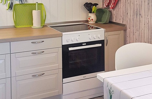 Layout: dining room, open kitchen(cooker(electric), hood, coffee machine, dishwasher, fridge, freezer(200-249L), washing machine), Living/bed room(TV(satellite, german television channels), radio), bedroom(double bed, children's bed, high chair), bedroom(2x single bed), bedroom(2x single bed), bathroom(bathtub or shower, washbasin, toilet), heating(electric), garden furniture, BBQ, parking, fish smoker