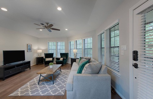 Welcome to the TreeHouse Retreat, a beautifully updated and designed garage apartment nestled in the trees of the Woodlands, one of the original neighborhoods of this enchanting community. If you're looking for a serene and comfortable place to stay during your trip, you have found it.