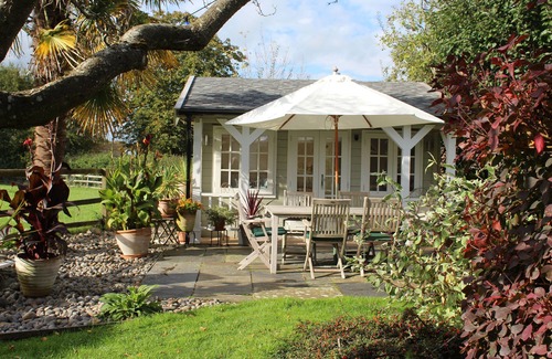 A handsome cabin home set in the private corner of a cottage garden on the southern edge of this quiet hamlet at the foot of White Horse Hill. Recently constructed to a high standard, well insulated, double glazed and tasteful - it enjoys its own patio with al fresco dining area next to a field, looking south to the Downs. There is a kitchenette with fridge, microwave, toaster, kettle etc, TV, broadband, Netflix and more. A delightful rural setting at the end of a no through road, perfect countryside for walking and cycling and within easy reach of The Cotswolds, Oxford and more.