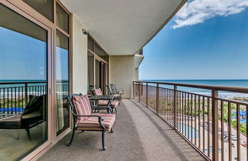 This oceanfront two bedroom, two bathroom condo comes with a spacious, fully equipped kitchen, a washer and dryer, glass enclosed showers, a jetted tub in the master bathroom, a large private balcony, three flat screen TV's and wireless Internet access. The sleeping arrangements include one king and two queen beds.