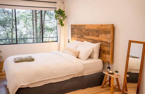 Nestled on the edge of the national park, our architecturally designed, Scandi style home allows you to enjoy waking up in the forest treetops, discovering the surrounding bushland, de-stressing with a bath before relaxing by the open fire with a glass of wine and a good book.