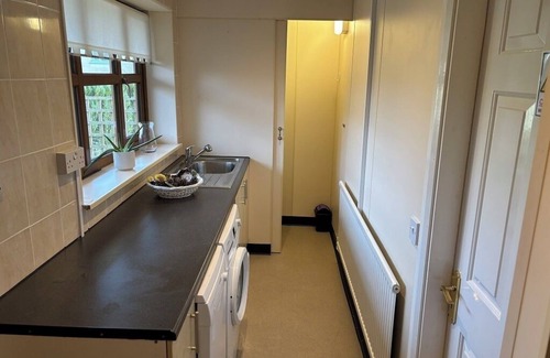 The well-equipped kitchen is a culinary haven for those who love to cook up a storm! Featuring sleek countertops, ample cabinet space, and all the essential appliances, including an oven, hob, microwave, and a handy washing machine, this kitchen has everything you need for your self-catering stay. Start your morning with a cup of tea on the breakfast bar and enjoy the kitchen's bright and airy feel, complemented by a large window, offering lovely views while you prepare your meals. Located in the space is also a wooden dining table that seats four, making it ideal for casual dining and talking about the adventures you had that day whilst looking at the stunning views!