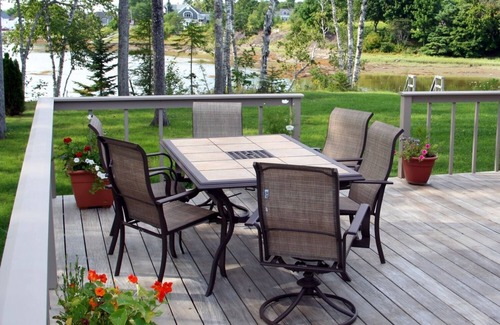 Hayden Point is a very clean and comfortable house situated on its own private waterfront with steps and a floating dock (in warm months) for direct access. From our dock, you can paddle down a peaceful river to the Gulf of Maine. Large windows give unobstructed views of the water from most rooms and there is plenty of outdoor space to enjoy. Hayden Point is a relaxing retreat that makes access easy for anyone with limited mobility. Our large deck overlooks the lawn and water.