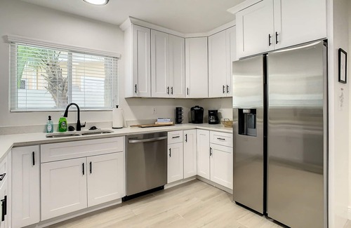 Newly remodeled and newly furnished waterfront pool home within walking distance to the Beach. Our Tranquil Waterfront Oasis Pool Home features a beachy, yet modern interior design with plenty of beds for everyone to sleep comfortably.