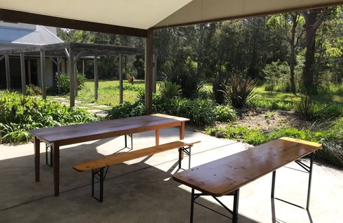 Luxurious accomodation only 5 minutes to Myall Lake and 15 minutes to the beautiful beaches of Seal Rocks and Blueys. This is a rural location that is very private, quiet and surround by trees and local wildlife. You will feel in touch with nature.