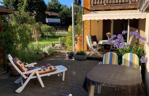 The lovingly renovated apartment is located on the ground floor of our 2-family house and has its own entrance. The sunny south-west terrace leads to the garden and barbecue area. Garden furniture and a barbecue are available. The 90 square meter apartment with 2 separate bedrooms is ideal for families or for several people. A parking space is located in front of the house; Storage facilities for bicycles are available. Wi-Fi is available on request.