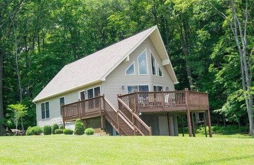 This is a 2,400 square foot home directly across the street from the main beach in the gated community of Treasure Lake, Dubois, Pa. The large beach area includes 2 pavilions, a large sandy beach, shuffleboard, a playground, multiple charcoal grills, and a volleyball court. Use the provided kayaks and life jackets to explore the various coves of Treasure Lake. The nearby LakeView lodge includes a bar, restaurant, large outdoor pool, tennis courts, the marina, and more.