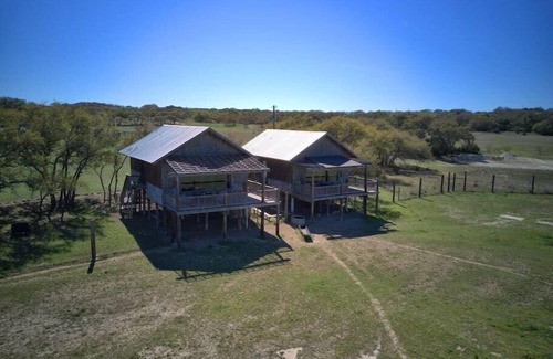 Come visit our unique Safari Style Bungalows perched 20 feet off the ground providing unobstructed views of the Texas Hill Country. The perfect getaway to relax and get away from it all. Pool use with social distancing guidlines The Bungalows are located within 10 min of Guadalupe State Park and the beautiful Guadalupe river, 10 min from both historic Boerne & Spring Branch, TX & 45 minutes from the famous Fredericksburg wineries. 2 available for rent. Pricing shown for Tree House only. Safari style cabanas include a main area with a beautiful raised platform bed, a second bedroom with 3 twin sized beds, comfortable living area and kitchenette (no stove), and unobstructed Hill country views. Can be rented with 2 other homes on the ranch to sleep larger groups (up to 20 guests) see my profile to view my other listings: The Pond House and the Windmill House - Fire pit area next to the bungalows for star gazing! 5 ft deep pool is open to all ranch guests (not heated). Our family lives on site but far enough away to give guests their privacy and space. We are located in a beautiful rural area at the foot of the Texas Hill Country. Far enough away to feel like your in the middle of know where, but just 15 minutes to everything. Close to wedding venues Park 31 and Kendall Point. Parking is located directly in front of bungalow. There are gas and charcoal grills on site and and beneath each bungalow. Pool is not heated. Pool hours are 10am-9pm.