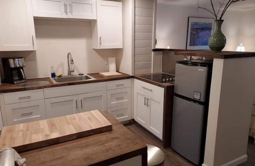 This studio is attached to another vacation rental. Both the house and the studio can be rented together to make a combined 4 bedroom, 3 bath, with a full/plus apartment kitchen.