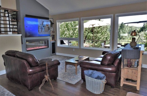 Lovely hillside home with a stunning view of the surrounding mountains and treetops. Newly redesigned and lovingly furnished by the owners! Wake up to a sweeping view of the sunrise from the master bedroom or enjoying entertaining on the deck for sunset. A two minute drive from downtown Murphys. Now has a Level 2 Ev Charger in the garage!