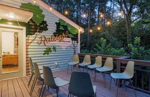 Welcome to the treehouse! This unique and captivating getaway is nestled in the heart of Raleigh's prestigious North Hills (3 min away from the mall!). Experience modern, luxury, and nature!