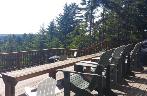 Treehouse with stunning ocean Views from expansive deck + Frontage on Forest l | Ski Chalet in Friendship