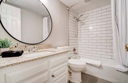 Downstairs you will find 2 bedrooms with new queen pillow top beds and large closets. Across the hall is a second living room with a pull out queen sofa and a 40 inch smart tv. Also, a work space with a desk and great WiFi. Downstairs is a fully renovated bathroom.