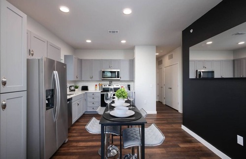 Discover the charm and convenience of The San Antonio Oasis, a contemporary two-bedroom, two-bathroom apartment nestled in the vibrant city of San Antonio. This stylish retreat accommodates up to six guests, offering a perfect blend of comfort and modern amenities. Whether you're here for a family vacation, a business trip, or a quick getaway, The San Antonio Oasis provides everything you need for an unforgettable stay.