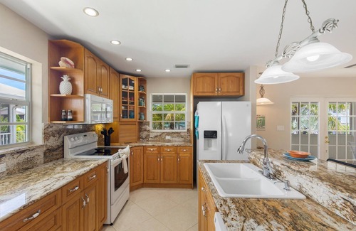Tropical 3BR on Canal – Dock for 30' Boat, Outdoor Shower, Bikes, Sleeps 6 is located in Cutthroat Harbor Estates. Tropical 3BR on Canal – Dock for 30' Boat, Outdoor Shower, Bikes, Sleeps 6 provides accommodation, featuring Laundry, View, Fireplace/Heating, among other amenities. This House features Laundry, View, Fireplace/Heating, to make your stay a comfortable one.