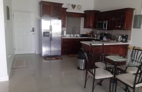 Relax in our stylish 1 bedroom apartment in a secured gated community, offering a cozy retreat perfect for solo travelers or couples. Our apartment combines comfort with convenience, ensuring a memorable stay in the city. Upon entering, you are greeted by a tastefully furnished living space designed for relaxation. The bedroom features a comfortable King-sized bed with soft linens, promising a restful night's sleep after exploring Kingston's vibrant streets. The apartment is equipped with air conditioning, providing relief from the island's tropical climate whenever needed. A modern bathroom offers a refreshing shower to start your day or unwind in the evening. One of the highlights is the private balcony, where you can enjoy your morning coffee or evening cocktails while taking in views of the cityscape or soaking up the warm Caribbean breeze. For your convenience, the kitchenette is equipped with essential amenities for preparing light meals and snacks. If you wish to dine out, you'll find nearby local eateries and fine dining restaurants where you can sample authentic Jamaican cuisine.