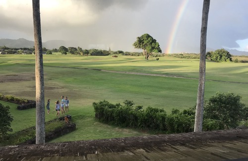 Bright and open, private three bedroom luxury home. Unique nautical style hanging bed in the upstairs master bedroom that also features a lovely kitchenette and covered lanai. Home has fully stocked gourmet kitchen and large saltwater pool. Stunning mountain and golf course views from all bedrooms! 7 minutes walk to world famous south shore beaches.