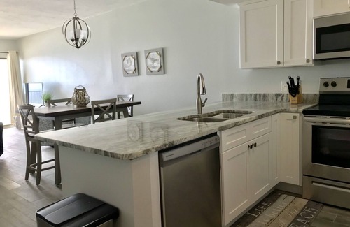 Tropical Winds 602 is a 2 bedroom 2 bathroom condo with approximately 1049 sq ft located on the 6th floor. Comes with a fully equipped kitchen with a dining table with seating for four and four bar stools. The kitchen and baths boast beautiful granite countertops and the entire unit has wood-look porcelain tile flooring. The kitchen has all stainless steel appliances and the condo has been furnished with all new furniture, mattresses, fixtures, and accessories. King, queen, sofa sleeper. Sleeps 6.