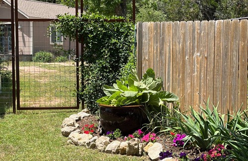 The Aloha Cottage sits high on a corner lot on a little over two acres, on a dead end, across the street from Lake Travis. Approximately half of the property is wooded and the remaining half is an expansive front yard with numerous, gorgeous Live Oaks. (There is one tree on the property that is estimated to be 300 years old. It's a beauty!!) It is peaceful and abounding with Mother Nature. All of this yet still 15-30 minutes from numerous restaurants, shops and some great Spicewood nightlife.