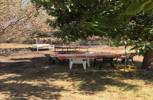 Espacio acogedor con un jardín de 700 mts. rústico, con el pasto que ha ido creciendo, como se ve en fotos ya que por principio regamos poco. Nuestra casa es de campo, pero acorde en relación precio beneficio y con lo necesario para pasar unos días de verdadero descanso.