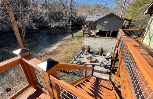 Tuckasegee River House - 4 Bed/2 Bath/ Sleeps 7. Get as close to the water as possible! Large Covered Deck overlooking the river with Hot Tub under the stars! Unwind outside around the riverside fire pit. World class trout fishing just steps away. Just a short drive from downtown Dillsboro & Sylva, NC. Perfect for fisherman, families or romantic get-a-ways!