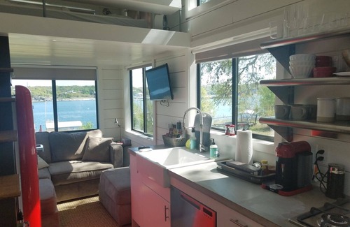 Two New 2 bedroom Tiny Homes on Lake Travis. Price is for the entire property, including both tiny homes. Two queen size beds plus sectional sofa in each home. Homes includes a Washer/dryer, dishwasher, cooktop, convection microwave. Private Boat Dock w/ dual trapeze. 1.3 acre property located within one mile of Crosswater Marina in Lakeway. Outside deck with grill, fire pit, water mat and two kayaks. There is an electrical hookup for an RV if you want to bring one for an extra fee.