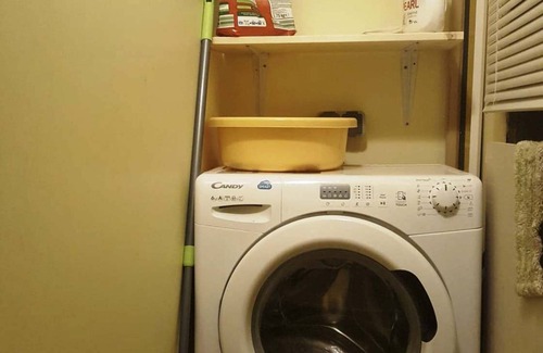 It is a perfect two rooms apartment on the ground floor with everything one can need to have a comfortable staying: two separate rooms with a double bed in one room and a large sofa with a sleeping function in another (an air mattress can be provided in needed for more guests), a cosy bathroom with a tube and a separate WC, a very nice kitchen with all necessary appliances (micro-wave, fridge, gas stove and oven, table with 4 chairs, glassware, towels), and a separate laundry room. There is a very fast WIFI in this apartment and a distant control outdoor, two balconies and a large entrance hall which can be used as the third room.